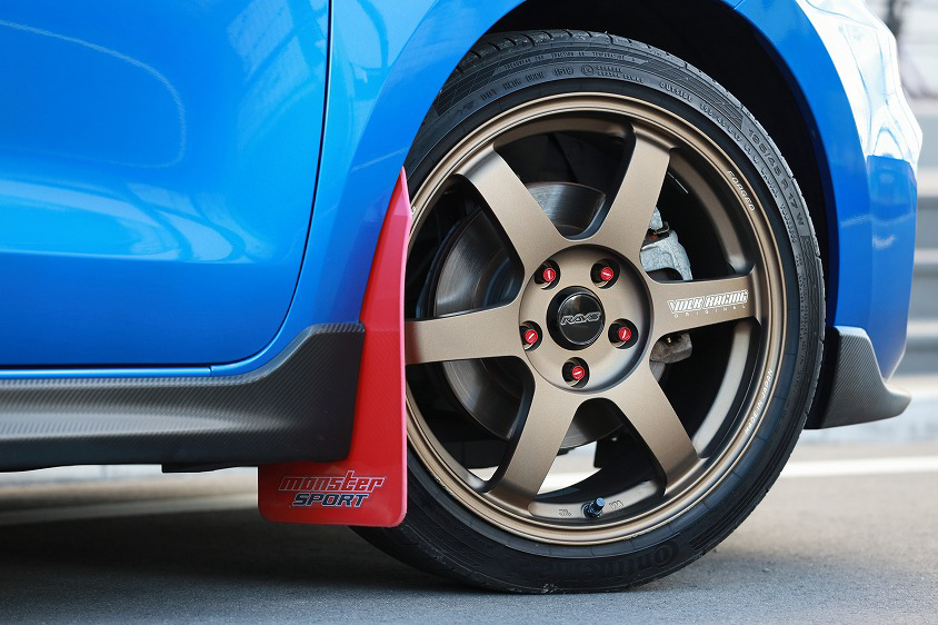 エクステリアではGTウイングの迫力がお気に入りで、その姿を見るたびに、かつてJWRCに参戦していたスイスポの姿が脳内でオーバーラップするそうです。ラリーイメージを補完するため、モンスターでも取り扱うマッドフラップファクトリー(MFF)のマッドフラップも装着しています。