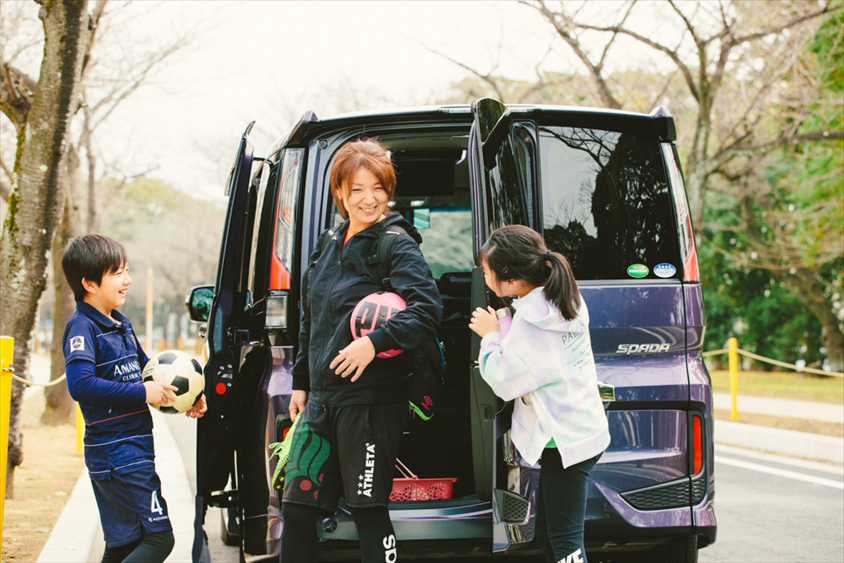 ママになってからは、ママ友や子どもの友達をクルマに乗せる機会が増えたそう。サッカーをやっている息子さんの友達を4、5人乗せて、遠征先までドライブしたり、ときに学校行事やサッカーの応援でママ友を乗せることも。