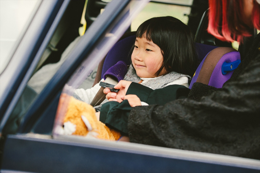 助手席に設置されたチャイルドシートに自ら乗り込むけいちゃんの姿を見て、祖父母、そして両親から確実にクルマ愛が継承されていることが確信できます。