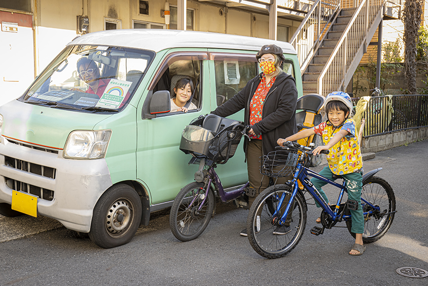 助手席に乗っているのが娘さんの里桜さん。自転車に乗っているのは、奥さんの里紗さんと息子さんの剣人くん