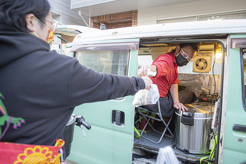 災害時に備えて備蓄している食料の消費期限が近づいた際に、それを市民に無償提供するのですが、その際には大橋さんがキッチンカーでアルファ米のおいしい食べ方を実演しつつ、おかずを販売するといったことも行っています。