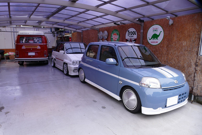 飯島泰彦さんの愛車は1974年式フォルクスワーゲン タイプII ウエストファリア キャンパー。これにホンダ・シティカブリオレ、ダイハツ・エッセを加えた3台が、自宅カーポートに収まっています。