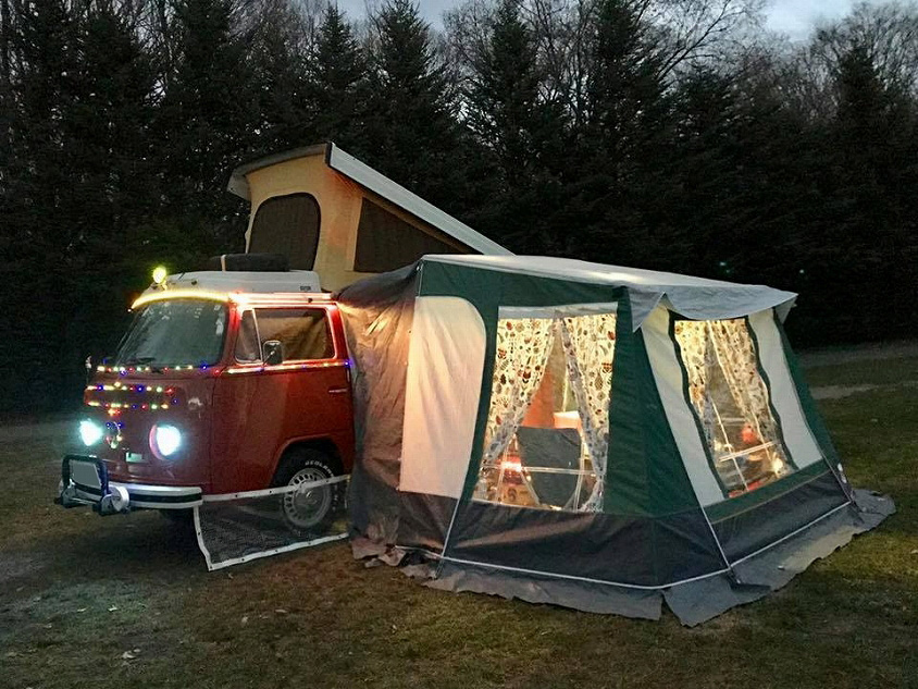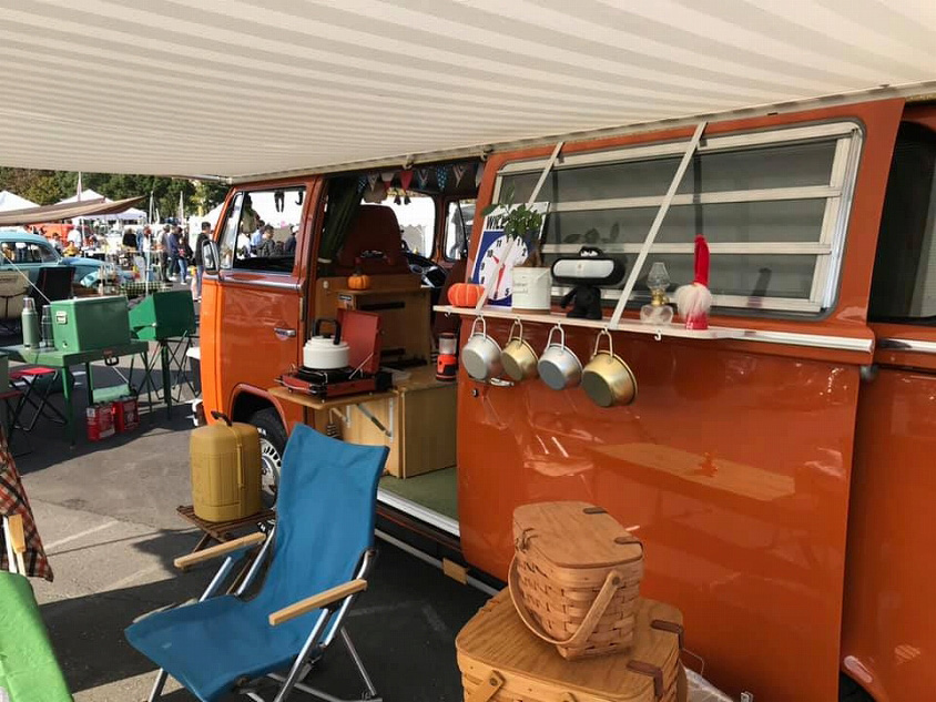 VW/ワーゲンバスのオーナーが集まるキャンプにも参加するようになった飯島さん。整備の技術だけでなく、カスタムのさまざまなアイデアを持つ飯島さんは、参加者からも頼りにされている様子がうかがえます。