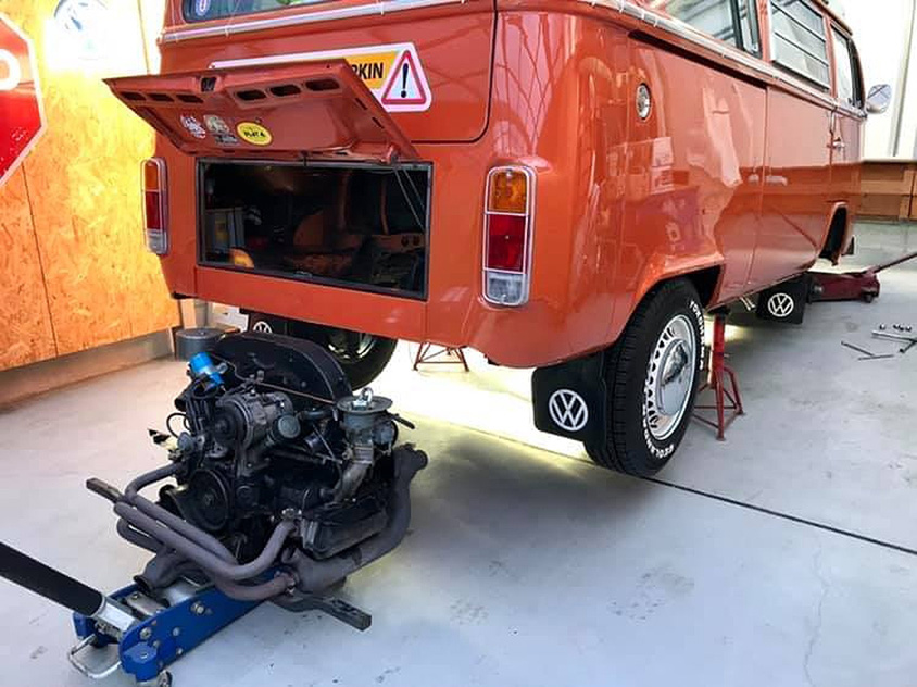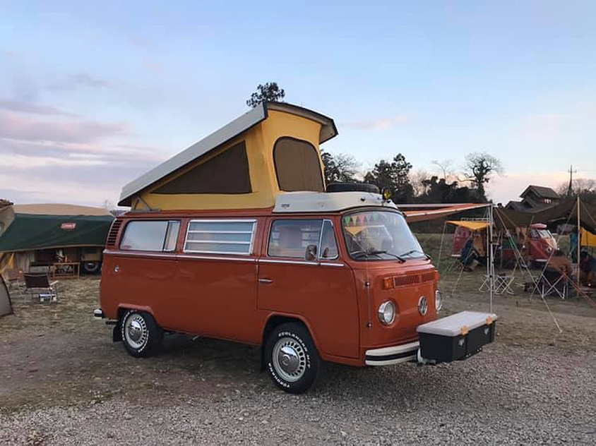 VW/ワーゲンバスのオーナーが集まるキャンプにも参加するようになった飯島さん。整備の技術だけでなく、カスタムのさまざまなアイデアを持つ飯島さんは、参加者からも頼りにされている様子がうかがえます。