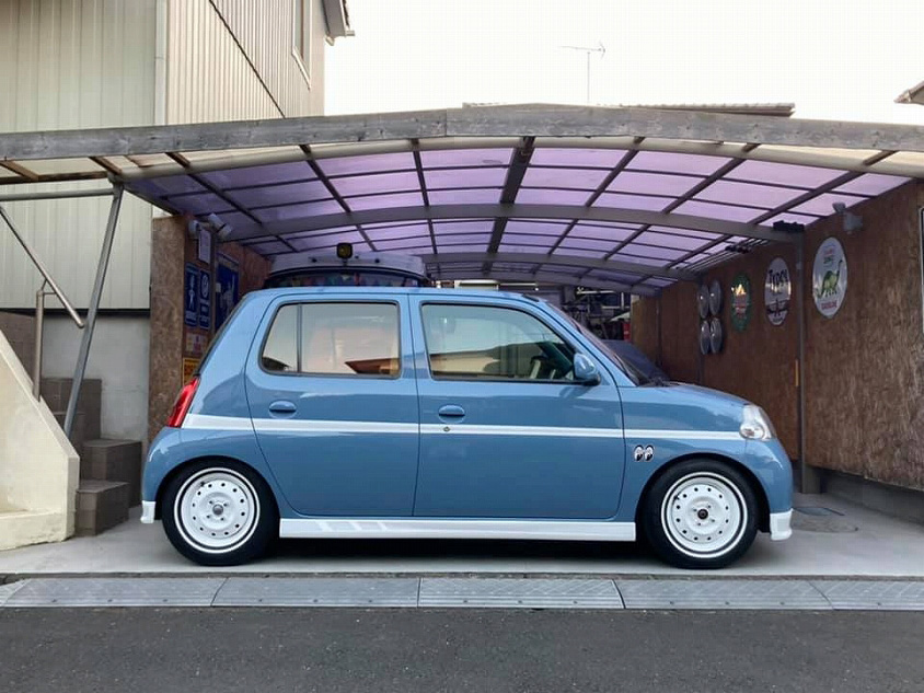 日常の足として活躍しているエッセも、足回りはしっかり強化。ルックスもやりすぎない、シンプルなカスタムが施されていて、デザインの魅力を引き出しています。