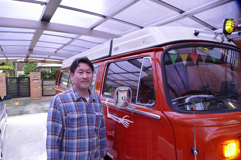 飯島泰彦さんの愛車は1974年式フォルクスワーゲン タイプII ウエストファリア キャンパー。これにホンダ・シティカブリオレ、ダイハツ・エッセを加えた3台が、自宅カーポートに収まっています。
