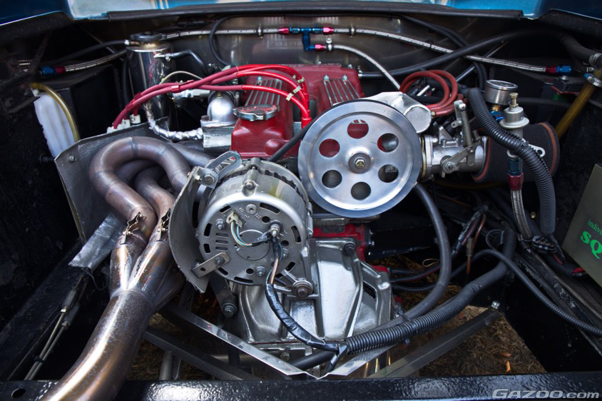 さらに、純正のデロルト製キャブレターを4連スロットルのインジェクションに変更。その制御用に装着しているのはDMSという米国製のエンジンコンピューターで、車内に引き込まれたコントローラーを使い、燃料や点火を調整できるようになっている。