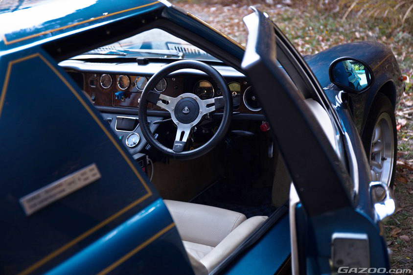 インテリアは、シートやドアの内張りなど、傷んでいた部分の補修を兼ねて、すべて張り替えを行なった。英国まで送って製作したというリアルウッド素材のメーターパネルも拘りのひとつだ。