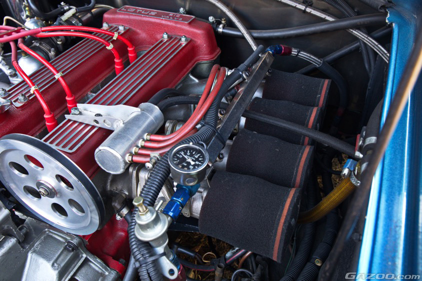 この“スペシャル”は、インテークバルブ拡大や圧縮比を高めるなどのチューニングが施されたバージョンなのだが、清水さんは約15年前に行なったオーバーホールの際に、ロータス・エスプリ用のビッグバルブや吸排気ポートのさらなる加工を追加。排気系もエキゾーストマニホールドとマフラーをワンオフ品に交換しているという。