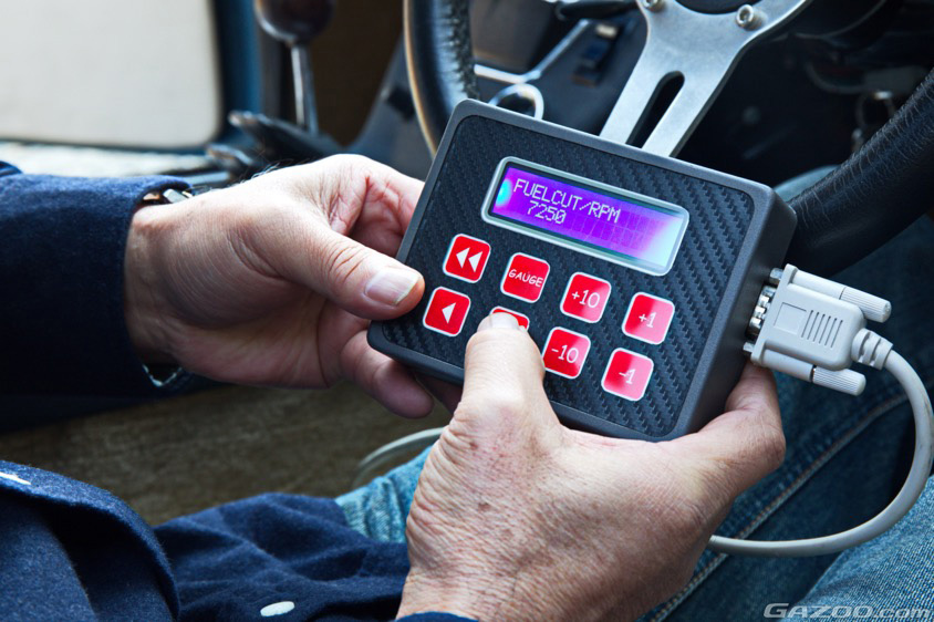 さらに、純正のデロルト製キャブレターを4連スロットルのインジェクションに変更。その制御用に装着しているのはDMSという米国製のエンジンコンピューターで、車内に引き込まれたコントローラーを使い、燃料や点火を調整できるようになっている。