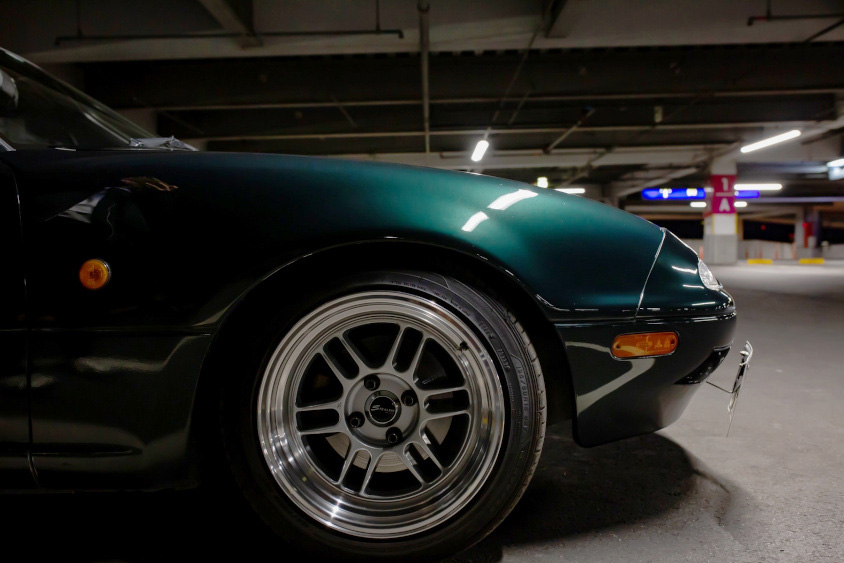 夫婦そろってスポーツカー好きという「わらびさん」の愛車は、1996年に限定800台しか生産されなかった「ロードスターNA8C (VRリミテッド コンビネーションB)」。メタリックが入っている緑の特徴的な塗装はこのグレードのみで、稀少価値が高いというところも気に入っているそうだ。