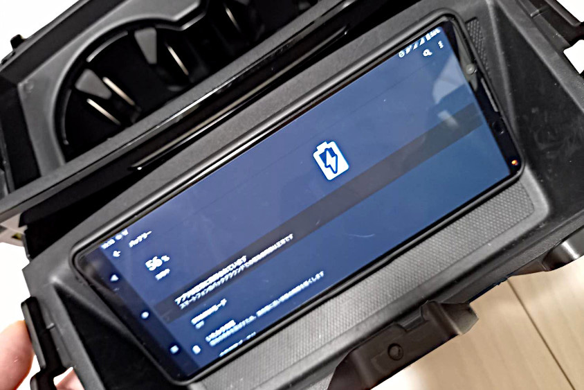 MAZDA3のコンセプト自体が「引き算の美学」なので、造られたものに足し算したくないという気持ちから、スマホホルダーや充電機なども見える形では置いていません。スマホ充電も小物入れに置いただけでワイヤレス充電できるように、市販充電器を解体してパネル裏に組むというDIYをしています。