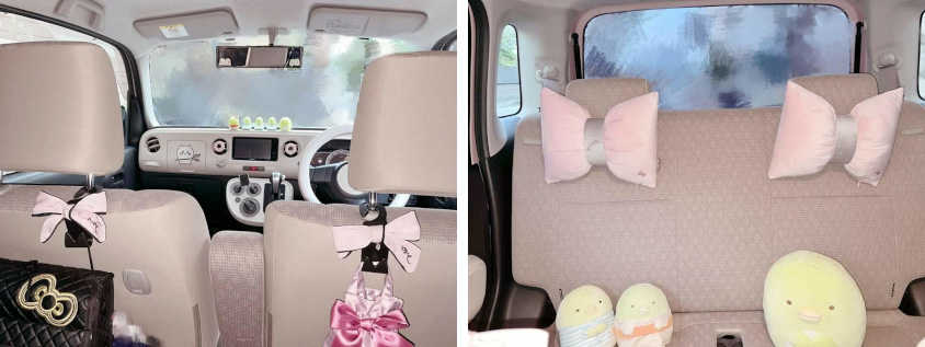 ほかには、自分の“好きなもの”を車内にギュッと詰め込んでいますね。“なんか小さくて可愛いやつ”略して“ちいかわ”のキャラクターグッズを置いたり、“すみっコぐらし”や“マイメロディ”とか、小動物系のグッズが沢山あります(笑)。