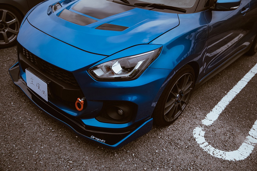 スイフトはちょっと丸みのあるフォルムですが、私のコンセプトは「カクカクさせたい」なんです。強い感じになってきたからか、私が乗っているというと驚かれることが多いです。