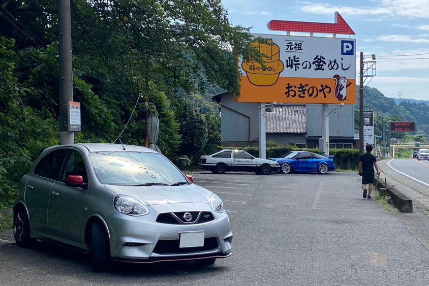 そうなんです!私がクルマ好きになるキッカケとなった“頭文字D”の聖地巡礼に行くことが出来ました。YouTubeを見ながら、このルートで行けば榛名山と碓氷峠に行けるねと夫婦で計画して、釜飯を食べに行ってAE86とシルエイティの間にマーチを置いて写真を撮ったり、伊香保にある“おもちゃと人形 自動車博物館”にある頭文字Dコーナーを巡ったり。