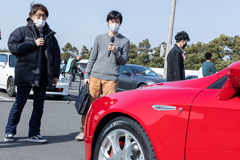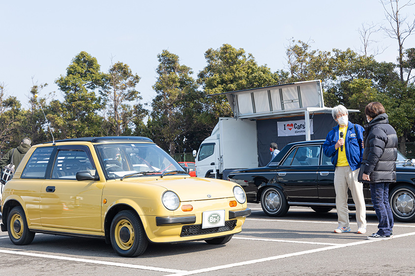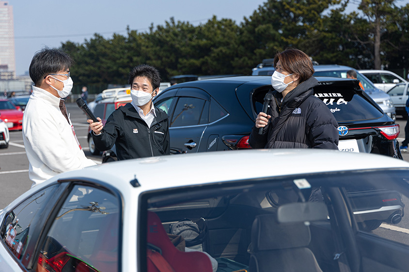 当日は、山田弘樹さんがマイクを片手に気になるクルマに直撃。オーナーさんとついついトークに熱が入ってしまうことも!? また、インタビューしていると自然にほかのオーナーさんたちも集まり、クルマ好きの輪が広がっていました!