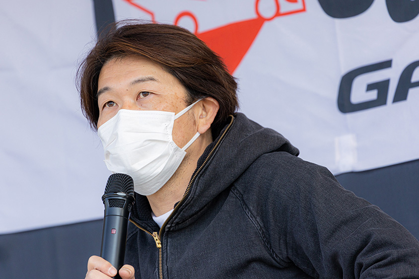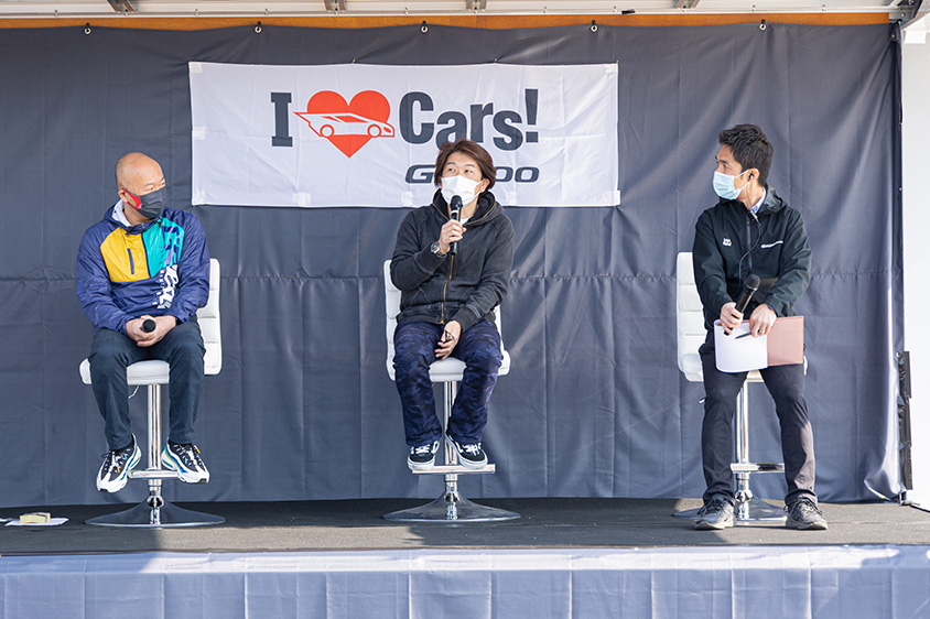 「突撃!愛車拝見」が終わると、自身も“赤パン”ことAE86に乗る山田さんと、チューニングパーツメーカーのトラストで86/BRZ開発担当を務める高橋さんによる、AE86やGR86、などスポーツカーについてのトークショーを行いました。