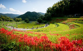 棚田を彩る鮮やかな赤い花!案山子コンテストも同時開催「彼岸花まつり」 奈良県明日香村