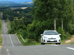 絶景ドライブルート 丘陵地を走る高低差の激しい直線道路 北海道上富良野町