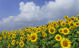 夏空と一面に咲くヒマワリ!ゲレンデの斜面を利用した三ノ倉高原の花畑 福島県喜多方市