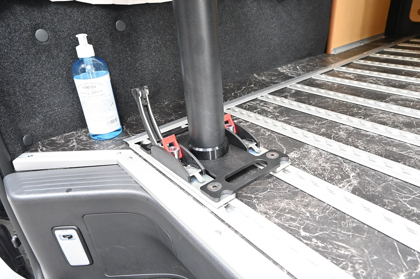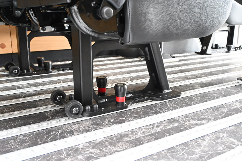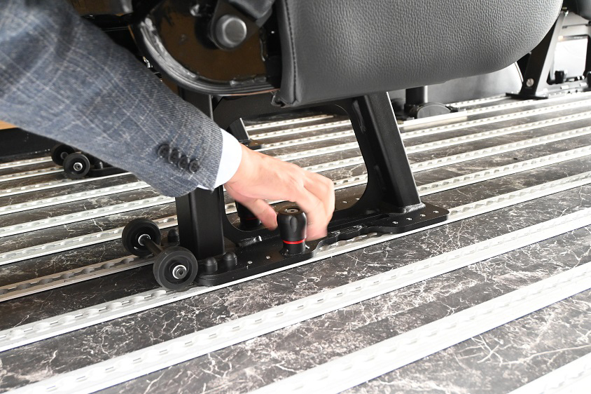 フラット床面に複数のフロアレールを這わせた専用フロア構造を採用し、最大8脚のシートやテーブル、キャビネットなどを自由なレイアウトで設置することが可能だ。