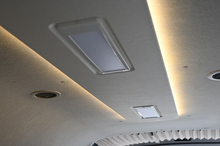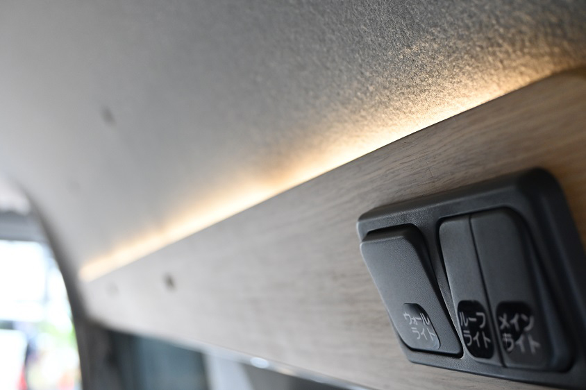 またオフィスとして不便なく利用できるように複数のLED照明で明るさを確保したり、コンセント付きのサブバッテリー、後席には5か所にUSBポートを設置するなど、使い勝手にもこだわった仕様となっている。