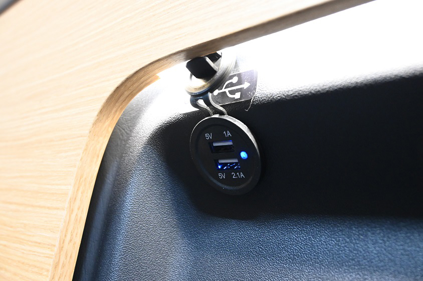 サブバッテリーの他、後席には合計5か所のUSBポートを設置