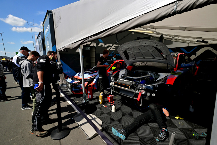 サーキット内は日本と似ていてピットにマシンが入っている場合と、パドックのテントにマシンが入っている場合があります。大きなメンテナンスを行う時はテントに戻して作業を行っている様子が見られます。