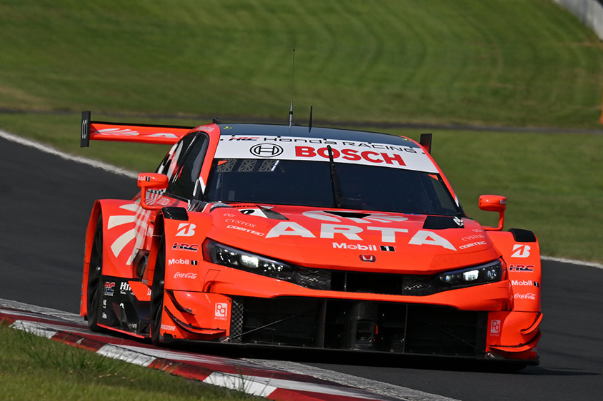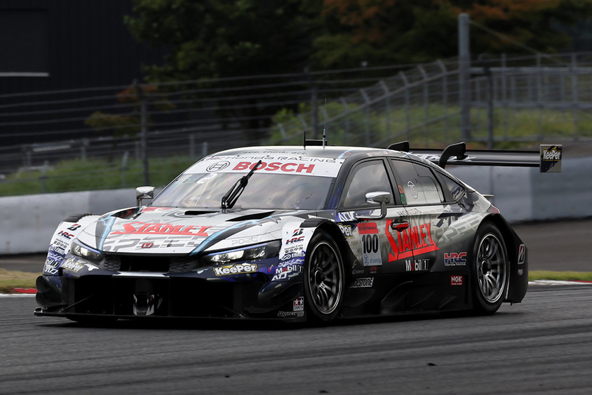 夏の日射しが照りつけ気温35度、路面温度56度という猛烈な暑さのなか迎えた決勝レース、GT500クラスは、ARTA MUGEN CIVIC TYPE R-GT #8の8号車(野尻 智紀 / 松下 信治)が、ポール・トゥ・ウィンで優勝。STANLEY CIVIC TYPE R-GTの100号車(山本 尚貴 / 牧野 任祐)が、2位、KeePer CERUMO GR Supraの38号車(石浦 宏明 / 大湯 都史樹)が、3位となり、Honda CIVIC TYPE R-GTが初優勝、ワン・ツー・フィニッシュを飾った。