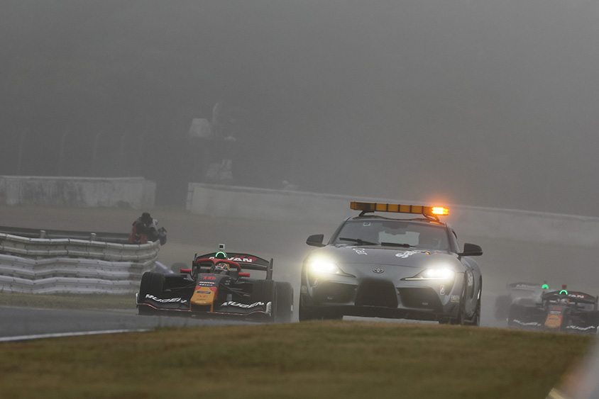 天候不良で大荒れとなった当日、ウォームアップ走行中の最終コーナーで、クラッシュが発生し赤旗中断。その影響で当初のスケジュールから1時間強の遅れとなる15時35分、雨は収まってきたものの霧が濃くなってくる中、セーフティカー先導でスタート。しかし、最終コーナーで2度目のクラッシュが発生し赤旗中断となり、レースはそのまま終了となった。