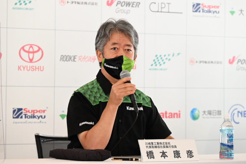 続けて、マイクを握った川崎重工の橋本康彦代表取締役社長は、2019年に川崎重工が所有するオートポリスを走行したモリゾウ選手から、コースの安全対策についての指摘をされた際、そのモータースポーツや安全への熱い思いに感銘を受けていたという。