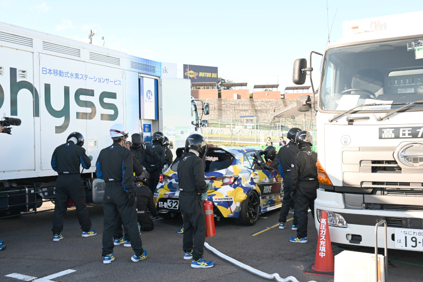 最初の挑戦となった富士24時間レースでは、水素を「つかう」という選択肢を拡げるトライアル、2戦目のオートポリスでは、地産地消、地熱発電によって水素を「つくる」というトライアルが行われてきた。
