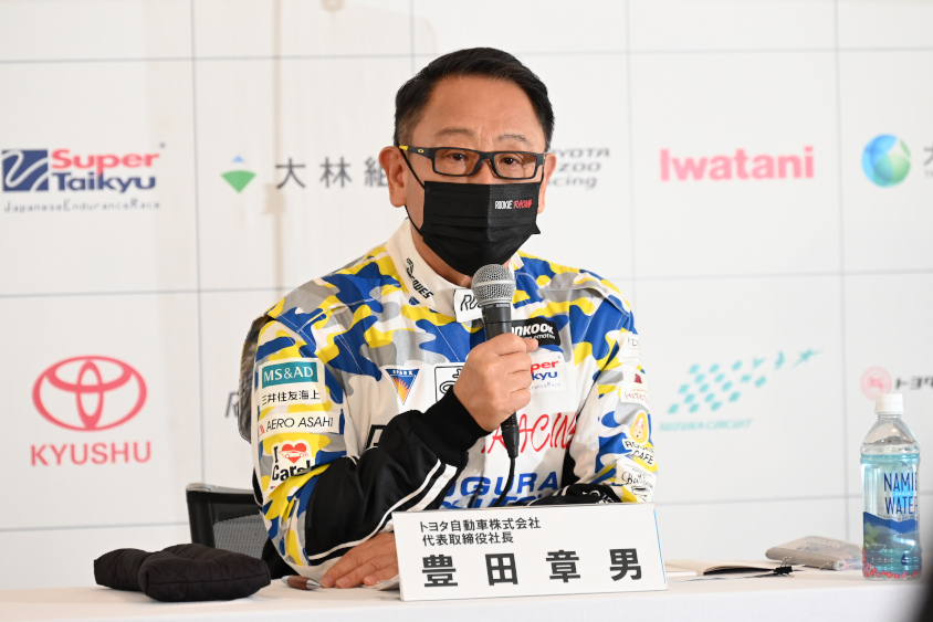 9月18日、スーパー耐久シリーズ2021第5戦 SUZUKAS耐が行われている鈴鹿サーキットで、水素の活用でカーボンニュートラルなモビリティ社会実現に向けた取り組みについての記者会見が行われ、トヨタ自動車からROOKIE Racingのドライバー、モリゾウこと豊田章男代表取締役社長とGAZOOレーシングカンパニーの佐藤恒治プレジデント、そして川崎重工の橋本康彦代表取締役社長が登壇した。