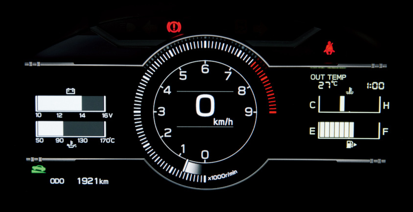 - 水平対向エンジンのピストンの動きをモチーフにしたオープニングアニメーションも流れる、BOXERメーター(7インチカラー+LCD液晶メーター)を採用。