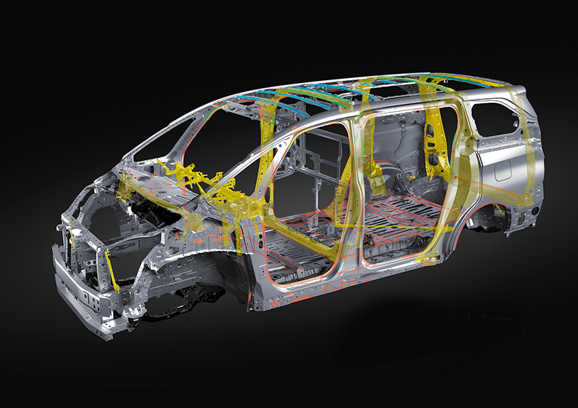 次世代レクサスが取り組んでいる「素性の刷新」を新型LMでの実施し、従来型比較で約1.5倍のボディねじり剛性を実現している。具体的には、ラジエターサポートブレース/ロッカーストレート構造、リヤ床下ブレース、クォーターピラー部リインフォースメント設定した。