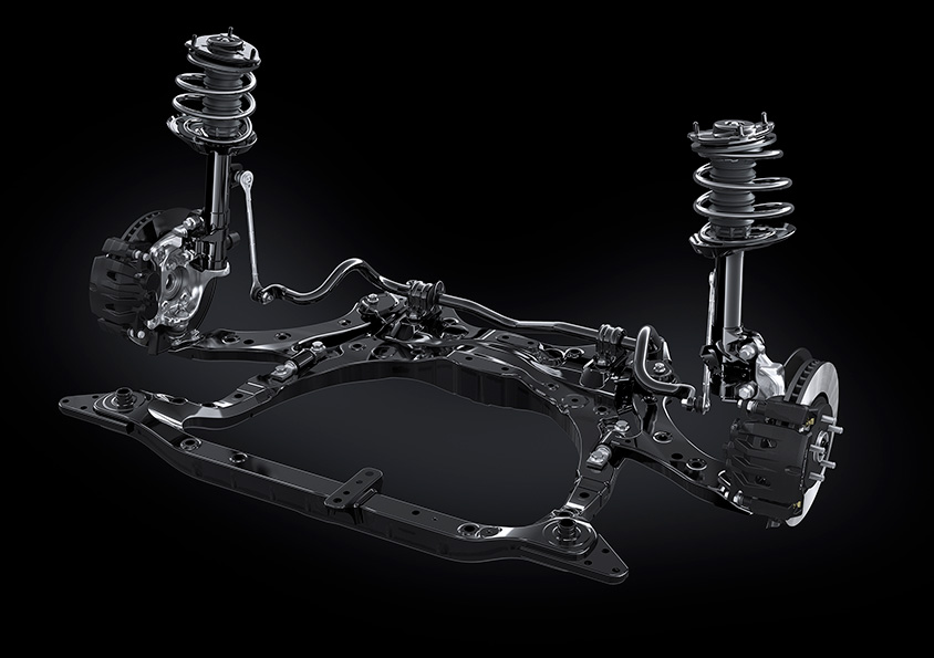 速度に関わらない上質な乗り心地実現にむけ、レクサス初の「周波数感応バルブ付AVS」を採用。リニアソレノイド式アクチュエーターと周波数感応バルブを併用し実現している。後席の快適性のためにレクサス初の「Rear Comfort」を採用し、加減速時の姿勢変化がより少なくなるセッティングをしている。