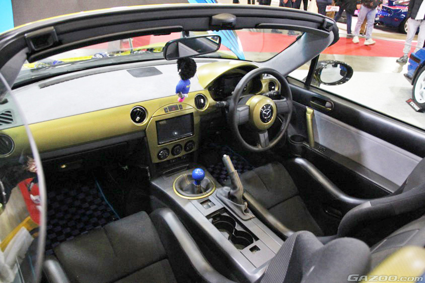 マツダ・ロータリーエンジンのチューニングショップとして知られるRE雨宮のブースには、今年も4台の展示車両が並ぶ。なかでも目立つポジションに展示されているのがこのロードスターだ。