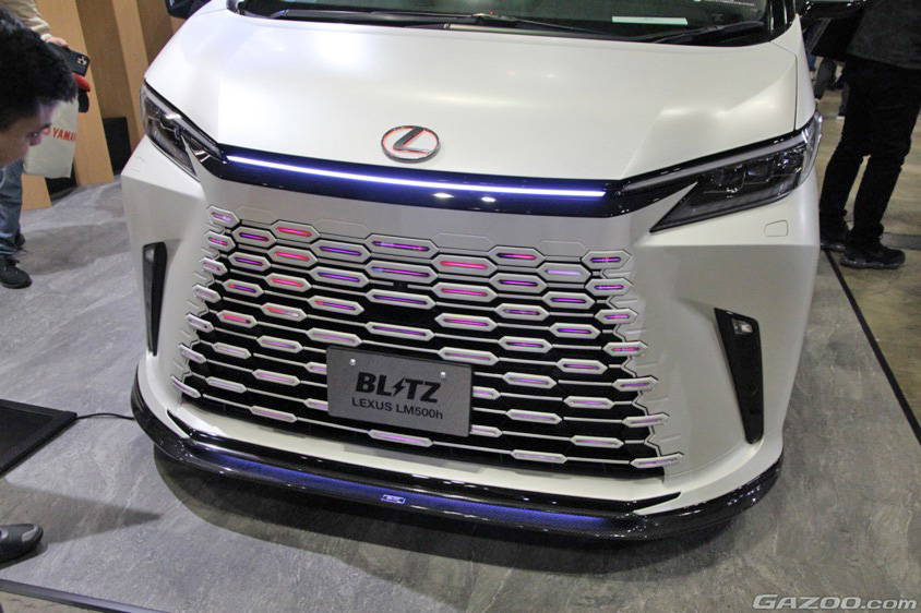 総合チューニングパーツメーカー『ブリッツ』のブースには、チューニングカーとともにレクサス・LMのカスタムコンセプトカーも展示されていた。