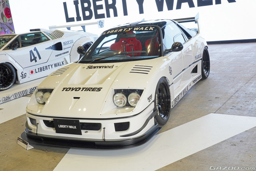 “過走行の激安車”から作り上げられた1台で、リバティー自らが手掛けた『LB-WORKS F40』、つまり本物のフェラーリF40のボディキットをセルフオマージュしたというユニークなコンセプト。