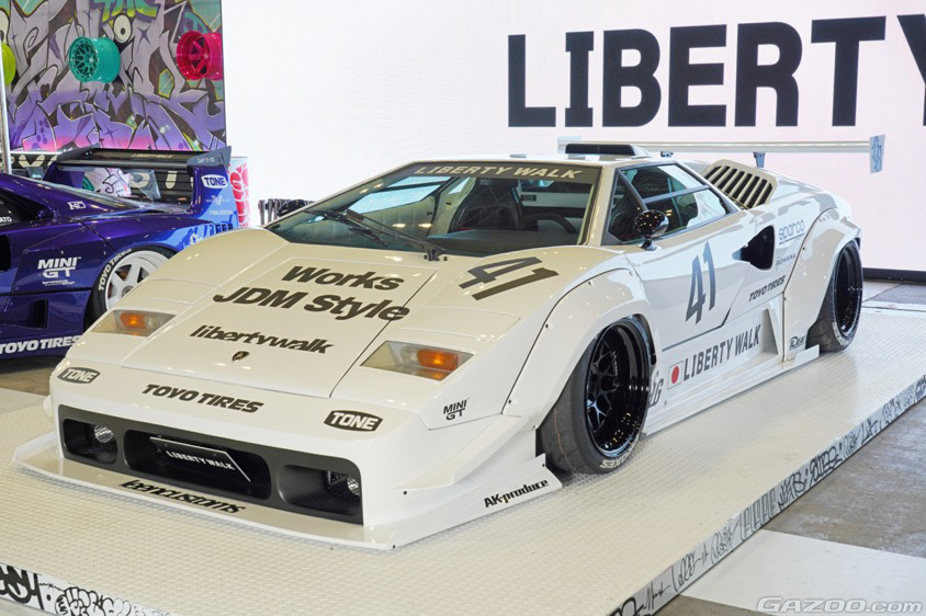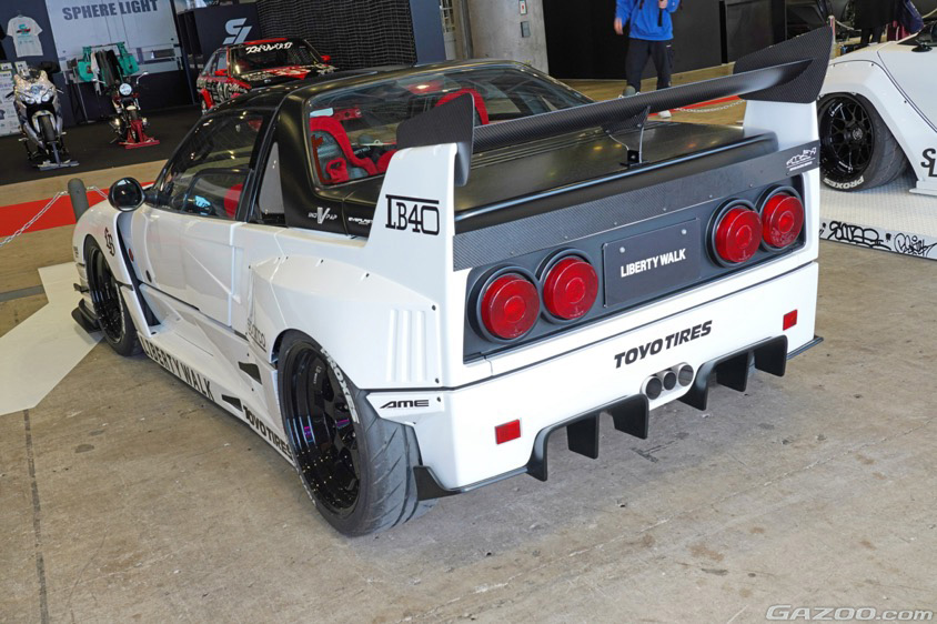 “過走行の激安車”から作り上げられた1台で、リバティー自らが手掛けた『LB-WORKS F40』、つまり本物のフェラーリF40のボディキットをセルフオマージュしたというユニークなコンセプト。