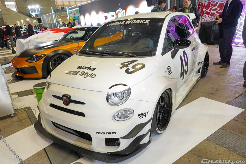 『Abas Works』という新ブランドとのコラボで披露された、アバルト595のワイドボディキット。