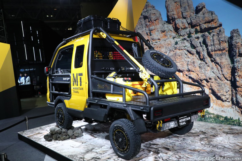 『山でオフロード走行を楽しむだけでなく、目的地でクライミングも楽しめるクルマ』をイメージして開発。ベース車は、広いキャビンで快適な乗り心地に定評があるスーパーキャリイ。4WD・5速MT(マニュアル・トランスミッション)車を使っている。
