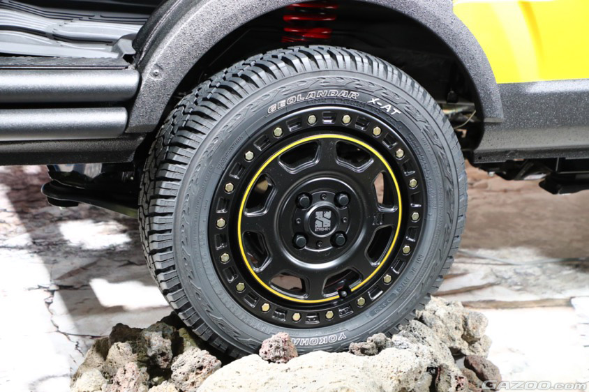 車高もややアップし、ガレ場などでクルマの下まわりがヒットしにくい仕様に。14インチのヘビーデューティーなタイヤも頼もしい。