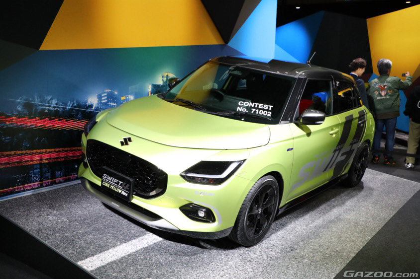 なおスズキのブースでは、ほかにも2023年11月に発売された軽スーパーハイトワゴンの新型スペーシアをベースにキャンプ仕様とした『スペーシア パパボクキッチン』を参考出品。こちらは、荷室に引き出しタイプのキッチンなどを装備し、親子でキャンプすることをイメージした仕様だ。また、2024年1月に発売したコンパクトカーのスイフトをベースとした『スイフト クールイエローレヴ』も展示。こちらは、新設定されたボディ色のクールイエローメタリックをマットカラーに仕立て、ボディサイドにはグラフィックも施したことがポイント。軽快な走りを持つスイフトの魅力を、より分かりやすいように、視覚的に表現したカスタマイズが施されている。