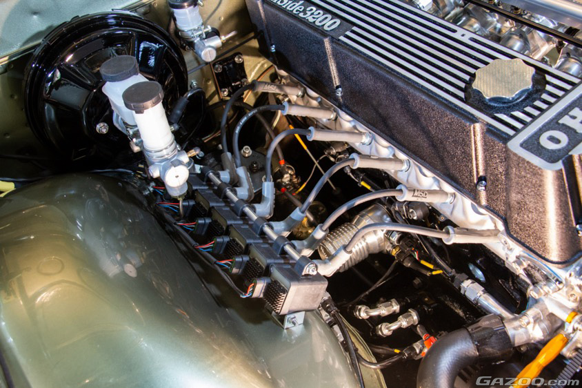その仕様を掻い摘んでお伝えしようとすると『L28改3.2ℓ』と、当時の説明と変わらなくなってしまうが、その内容は、アルミ削り出し加工のシリンダーヘッドやワンオフのマニホールド、リンク製のフルコンピューター制御(ECU)による6連スロットル化やダイレクトイグニッション化など、現在考え得るL型チューニングの最先端を詰め込んだ仕様に仕上げられている。