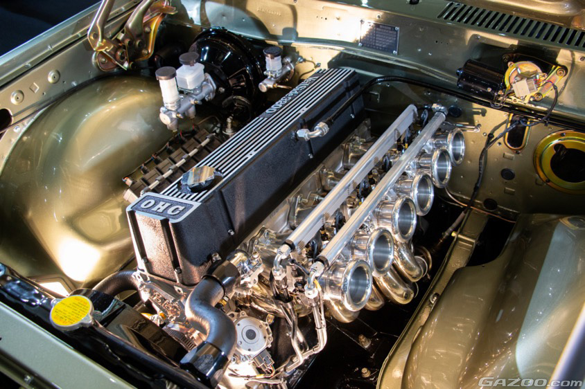 その仕様を掻い摘んでお伝えしようとすると『L28改3.2ℓ』と、当時の説明と変わらなくなってしまうが、その内容は、アルミ削り出し加工のシリンダーヘッドやワンオフのマニホールド、リンク製のフルコンピューター制御(ECU)による6連スロットル化やダイレクトイグニッション化など、現在考え得るL型チューニングの最先端を詰め込んだ仕様に仕上げられている。