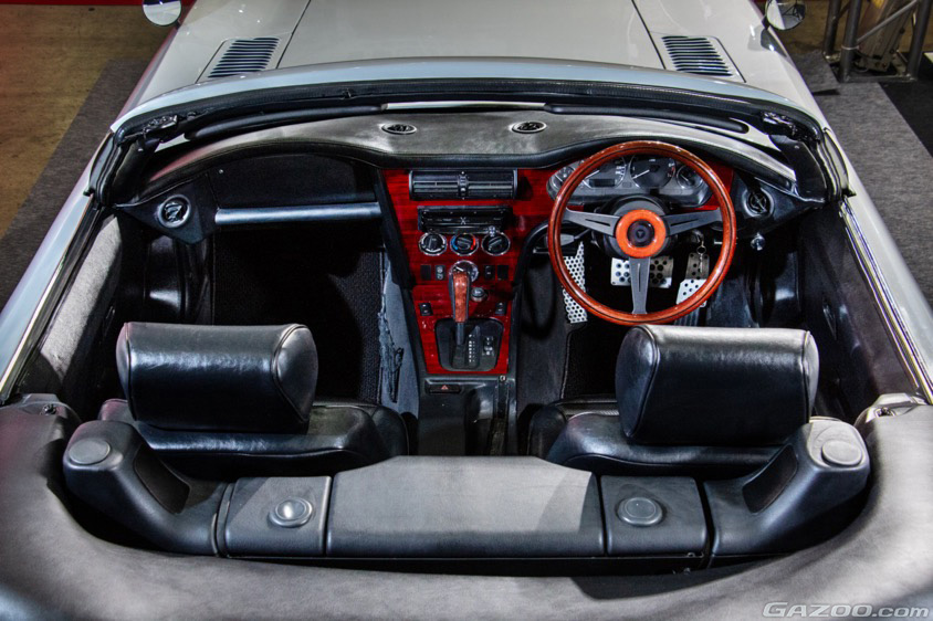 エクステリアだけでなく、インテリアもトヨタ2000GTのイメージに仕上げられている。注目はインパネに組み込まれるウッド素材。トヨタ2000GT同様にウォールナットを採用しているそうだ。しかもこれは今後市販されるROCKY2000GTの標準装備となるそうだ。
