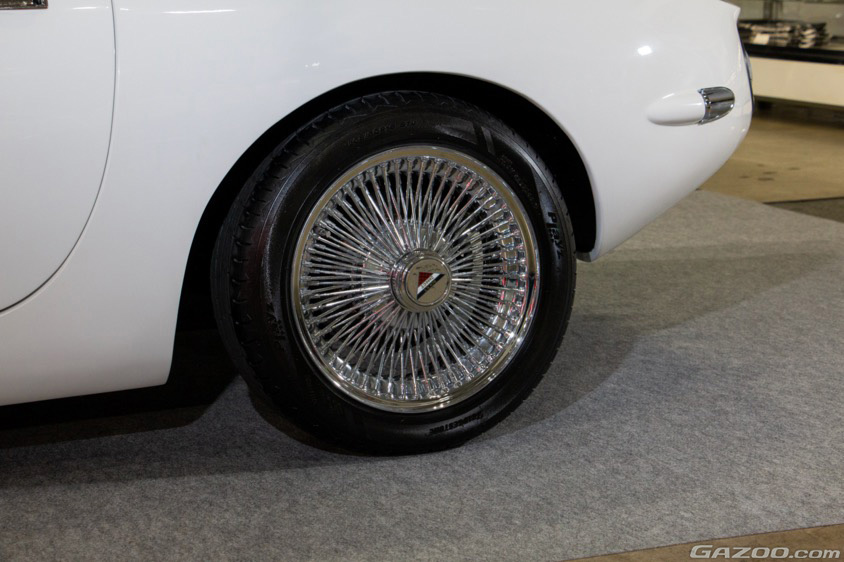 オープンボディにはボンドカーがそうであったように、ワイヤースポークのホールを組み合わせる。しかも既存のモノではなく、ロッキーオートオリジナルで製作したホイールとなる。サイズは16インチ×7.0Jで、205/50-16サイズのタイヤを組み合わせる。