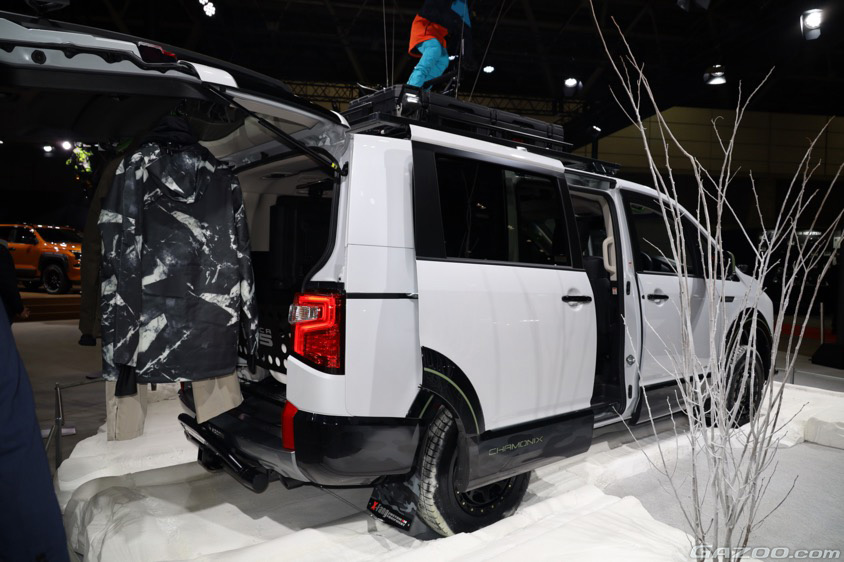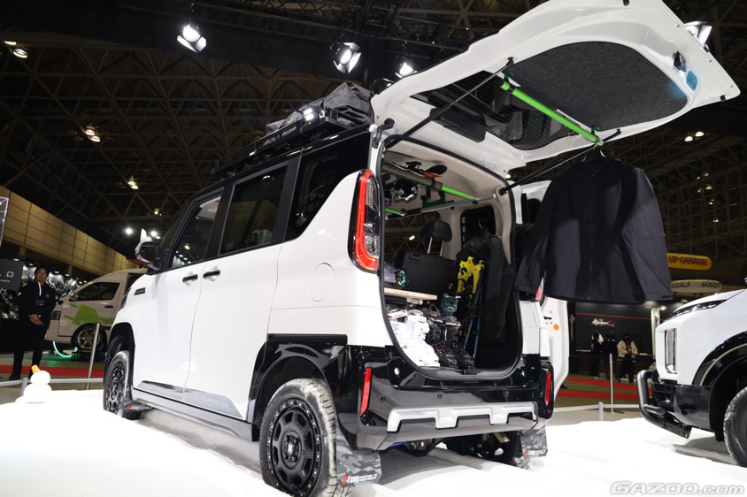 『デリカD:5シャモニースノーギア』と同様のテーマで製作された『デリカミニ シャモニースノーギア』。両車両ともに、展示されているそのままの仕様で購入可能なところもポイント。