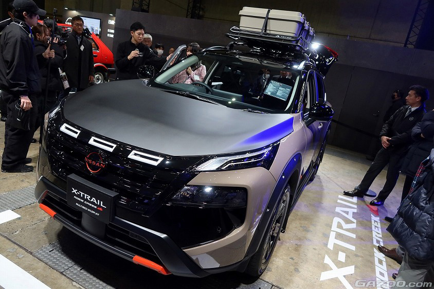 ワイルドなエクステリアに防水シートを組み合わせ、エクストレイルのタフギア感を引き上げたカスタマイズ仕様「ロッククリーク」。展示車両はそれをベースに、荷室をフラットにした車中泊仕様の「マルチベッド」となっている。ショーの直前に市販化がアナウンスされ、2月末から発売予定。